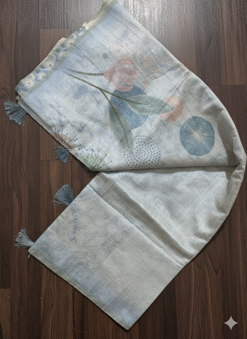Discover the charm of this Pastel Blue Tissue Saree featuring a soft glossy texture and lightweight drape. Perfect for weddings, receptions, festive functions, and parties. Shop premium-quality tissue sarees with smooth finishing, elegant shine, and fast doorstep delivery.